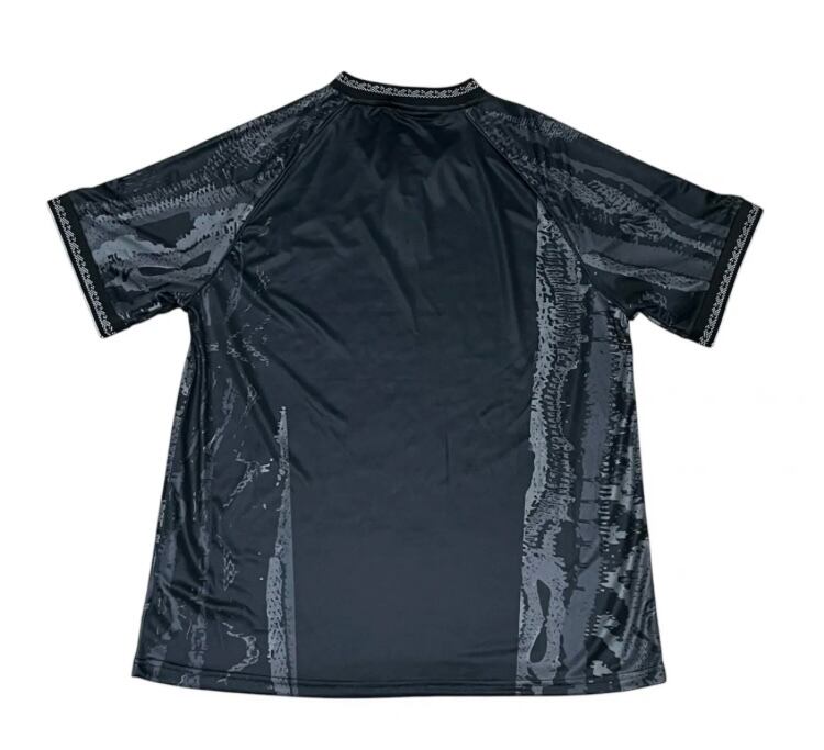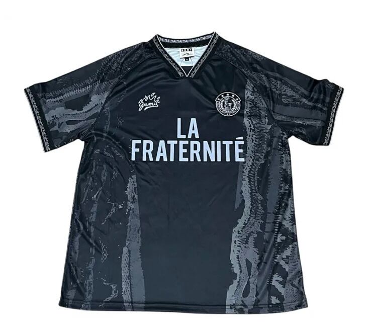 両サイドと袖にアニマル柄をプリントしたサッカーTシャツ。