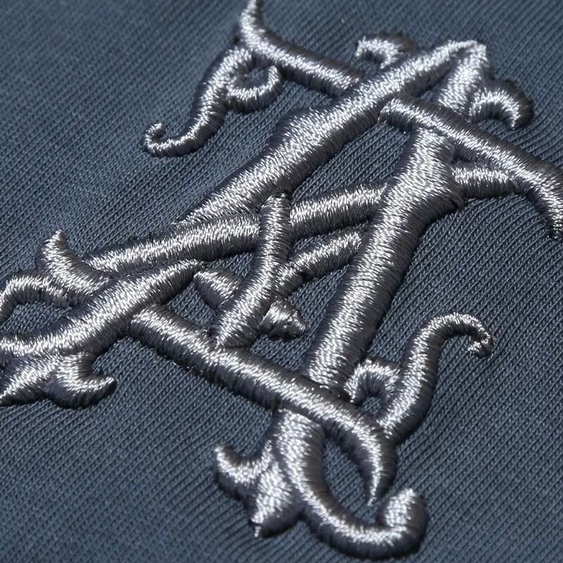 胸元にブランドロゴの刺繍を施したTシャツ。