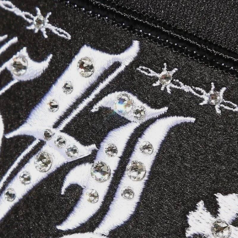 OLD ENGLISHのフォントでデザインされたロゴワッペンをスワロフスキーでカスタムしたデザイン。
