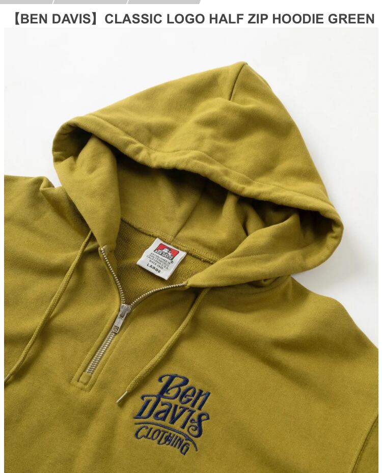 フロントは左胸に「BEN DAVIS CLOTHING」のロゴを程よいミッドサイズの刺繍で配置。