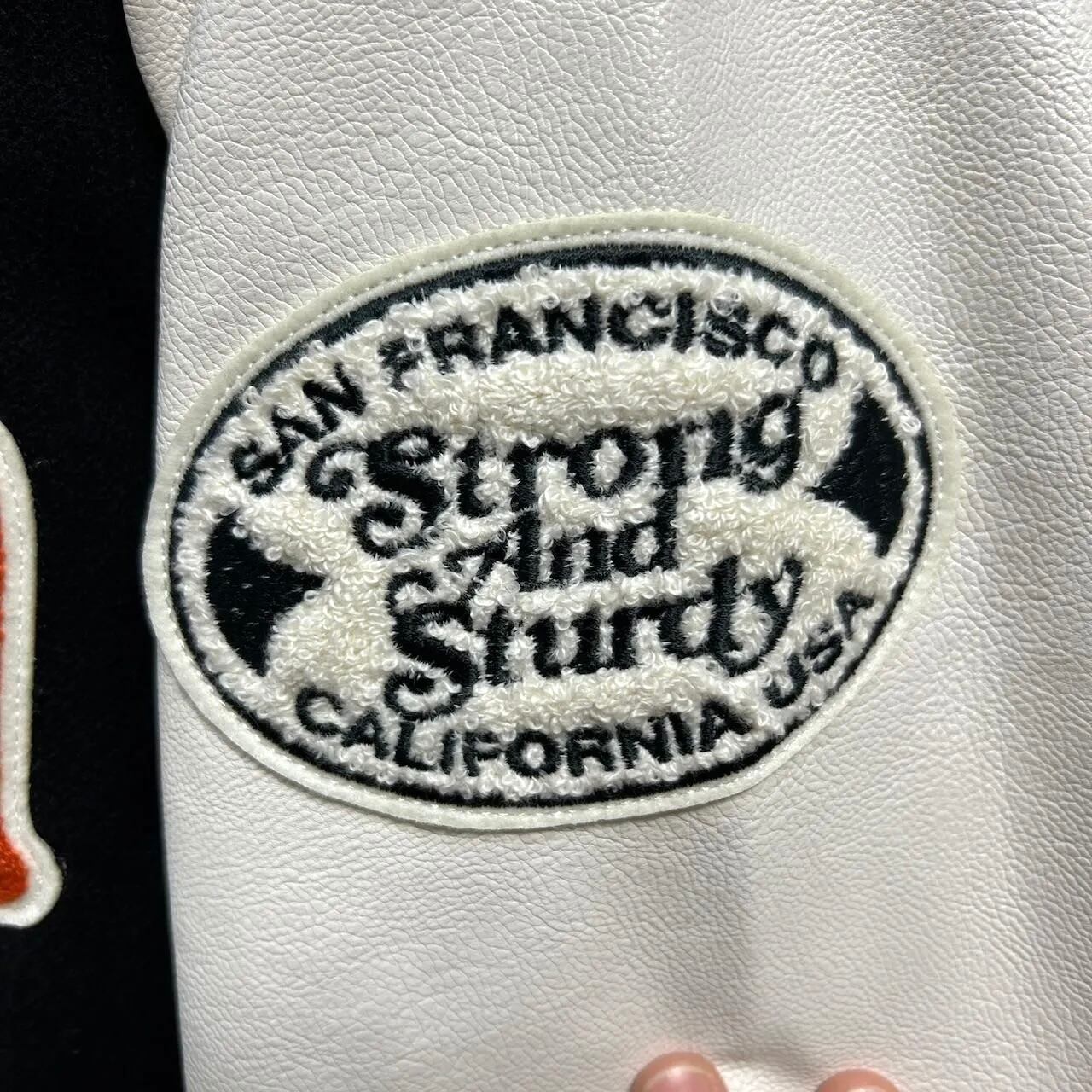 身頃フェイクメルトン、袖フェイクレザーを使用したスタジアムジャケットが登場!前後身頃、両袖に刺繍ワッペンを豪華に施したデザインが◎背面の柄は太番の糸を使用したチェーン刺繍で表現された雰囲気抜群な細部まで拘った1着!幅広いシーンで活躍するワードローブに加えたい存在感たっぷりな1着。