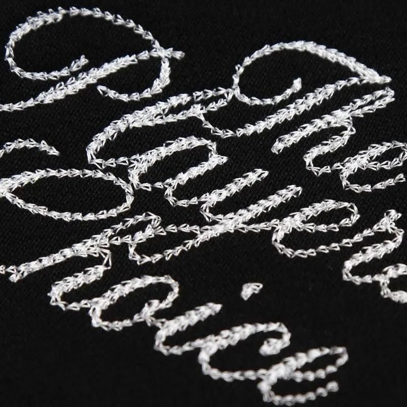 KDロゴをサガラ刺繍で施し、右胸へチェーンステッチ、両袖へブランドロゴをプリントを施した手の込んだ1枚。