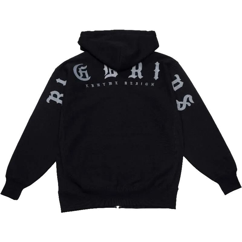 「BIG DRIPS」=「成功と権力」を意味するスラングを背中に大きくプリント。 同デザインのスウェットパンツと組み合わせたセットアップもご用意。