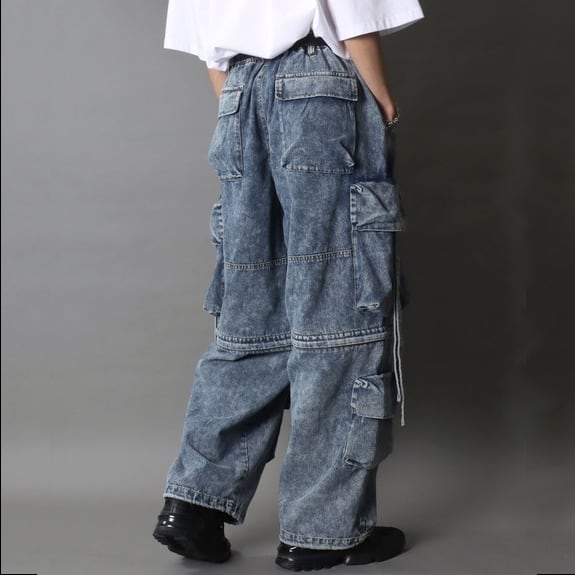【IMPORT】2WAY TACTICAL WIDE CARGO Denim PANTS BL