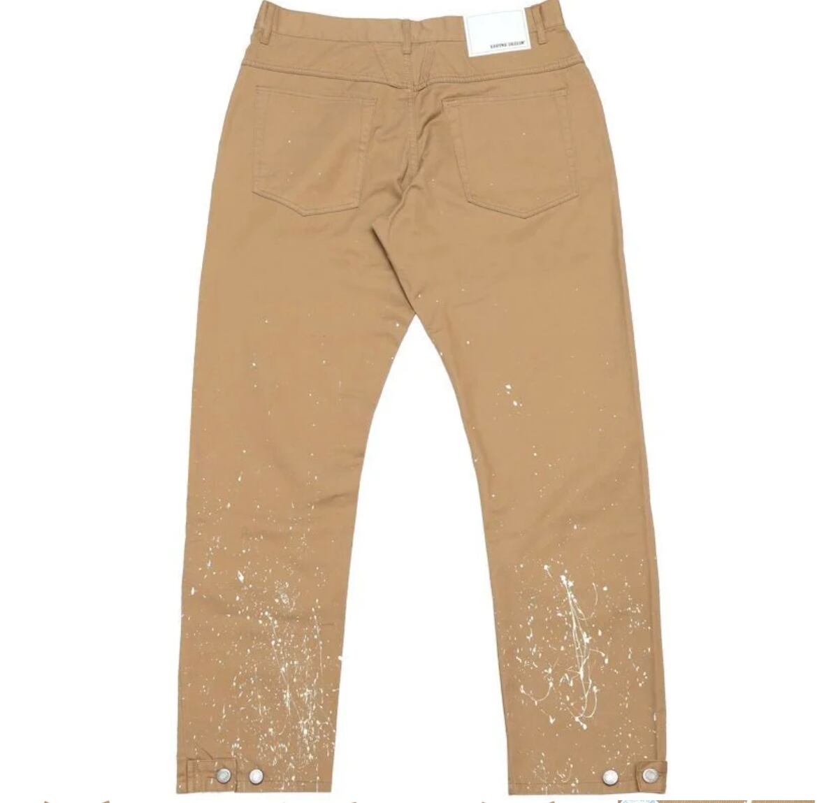 厚手のチノ生地にオフホワイトのスプラッシュペイントを施したチノパンツ。